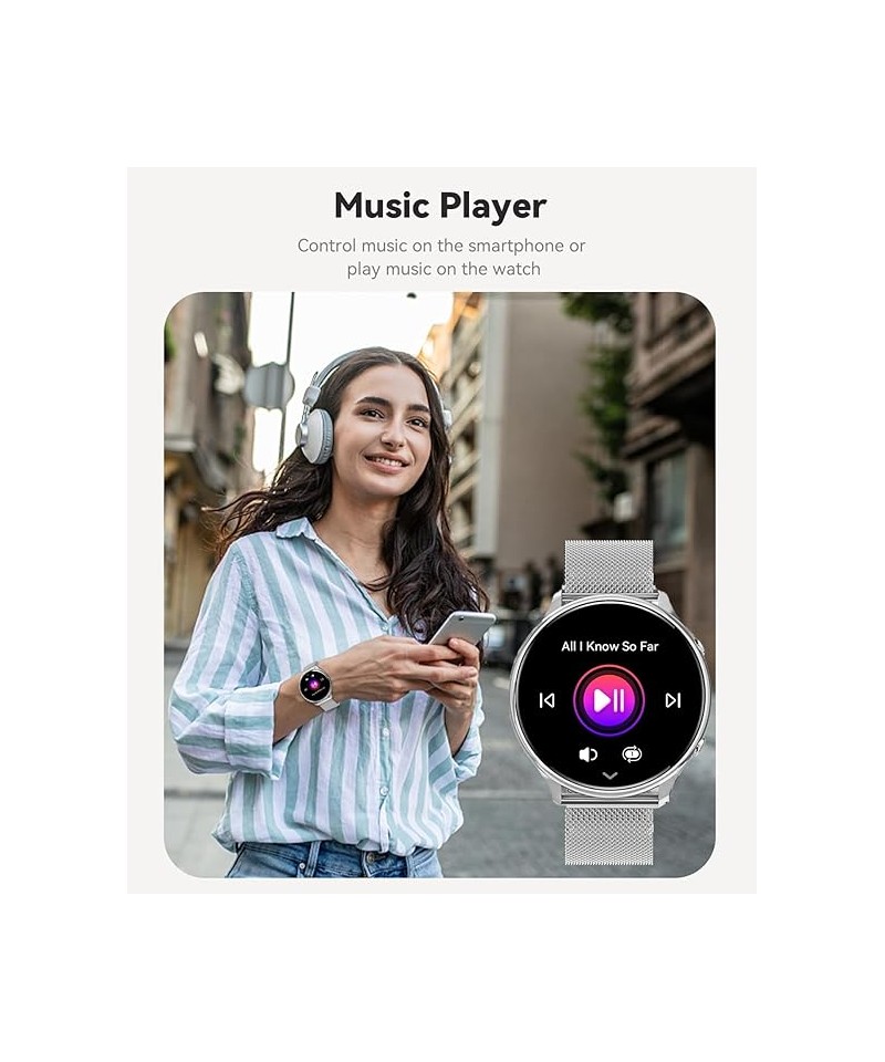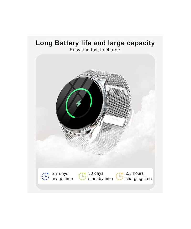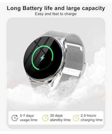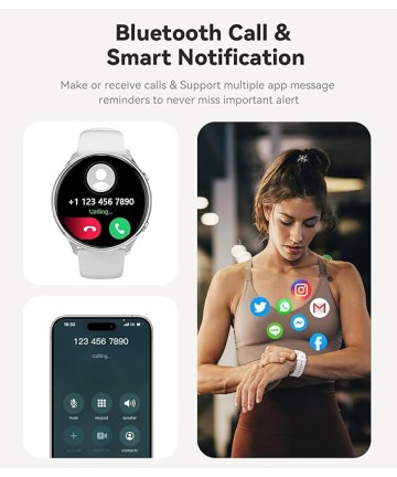 Smartwatch cu functie telefon, 1,39 inch, IP67, argintiu,Fitonme