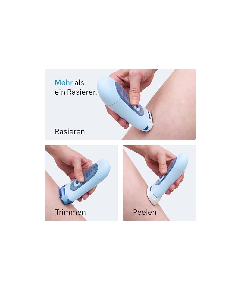 2 accesorii suplimentare: accesoriu de tuns pentru zona bikinilor și zonele sensibile, accesoriu de exfoliere