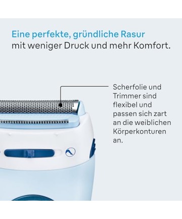 Folie de ras pivotantă și trimmer pentru o bărbierit perfectă a picioarelor, axilelor și liniei bikinilor