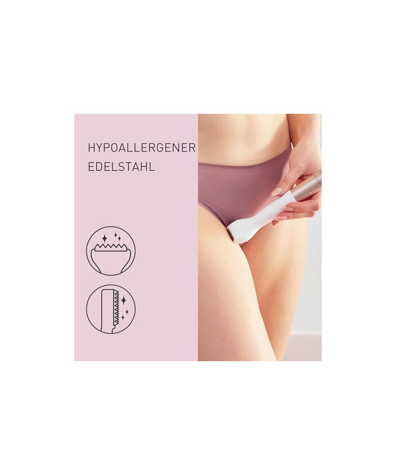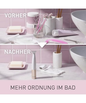 DESIGN COMPACT ȘI REZISTENT LA APĂ: Utilizați acest trimmer pentru femei ud sau uscat, în și în afara dușului, datorită protecției împotriva apei IPX7 și bucurați-vă de designul său elegant, prietenos pentru călătorii, făcându-l ușor de încadrat într-o geantă de toaletă.