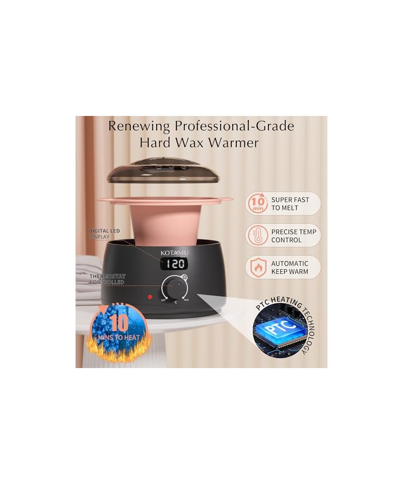 VALOARE EXCEPȚIONALĂ ȘI EXPERIENȚĂ VARIATĂ - Îmbunătățiți-vă experiența de ceruire cu setul KOTAMU All-in-One Hard Wax, unde valoarea excepțională se întâlnește cu versatilitatea. Cu un încălzitor digital profesional de ceară, o tavă din silicon ușor de curățat și patru formule speciale de ceară, puteți obține rezultate fără egal pentru orice tip de păr, fără a trebui să ieșiți din casă.