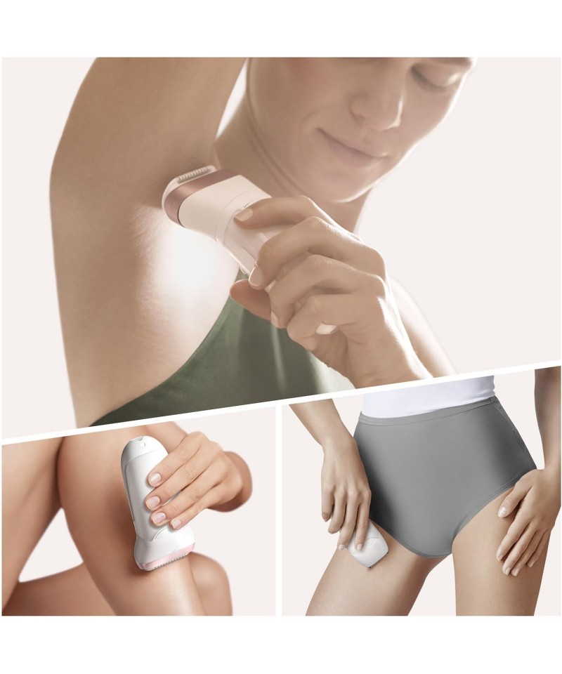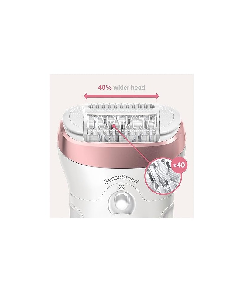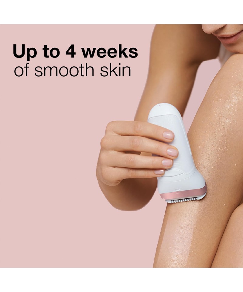 Epilatorul Braun Silk-épil 9-720 are un cap lat pentru o îndepărtare ultra-rapidă a părului.