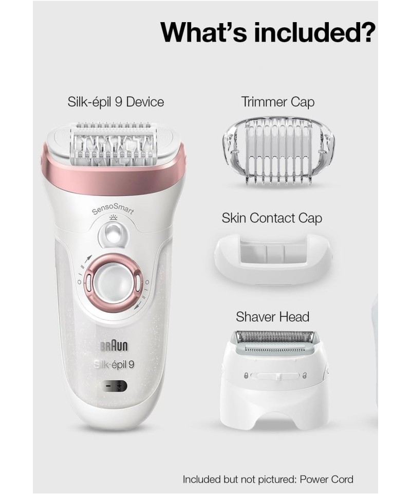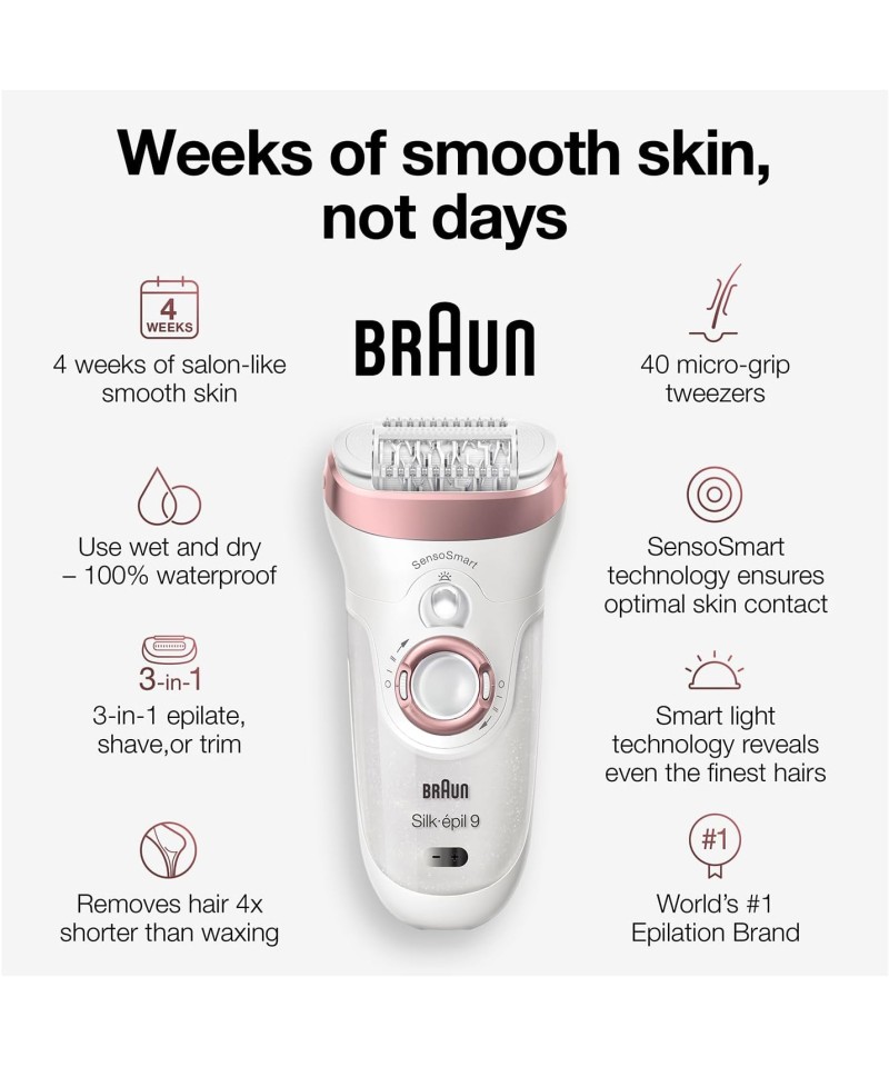 Epilator Braun Silk-epil 9 SensoSmart Wet & Dry cu cap de ras si cap de tuns, 5378