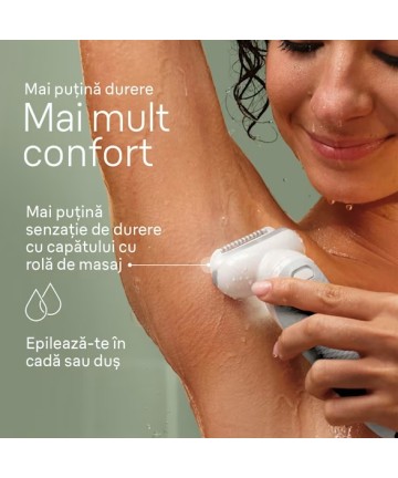 - Mai puțină durere, mai mult confort: Utilizare uscată sau umedă. Epilează delicat în cadă sau sub duș.