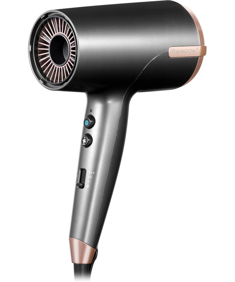 Generatorul dual de ioni eliberează până la 80 de milioane de ioni pe proces de uscare** și asigură un rezultat neted, fără frizz (** Comparativ cu uscătoarele de păr Remington standard)