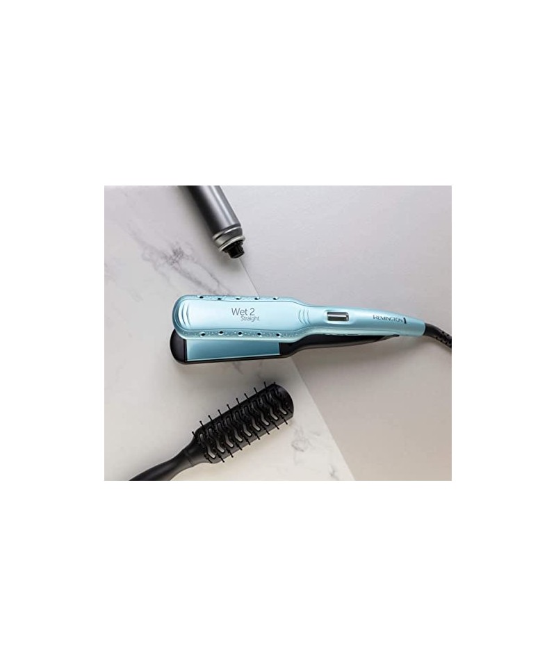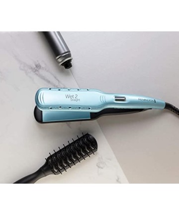 Produs de coafare 2-în-1 pentru uscarea și îndreptarea părului, pentru utilizare pe păr umed și uscat, acoperire ceramică de înaltă calitate îmbogățită cu agenți antifrizz activați termic