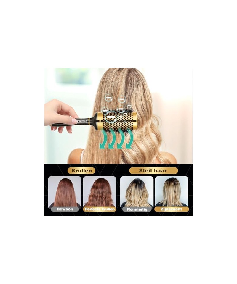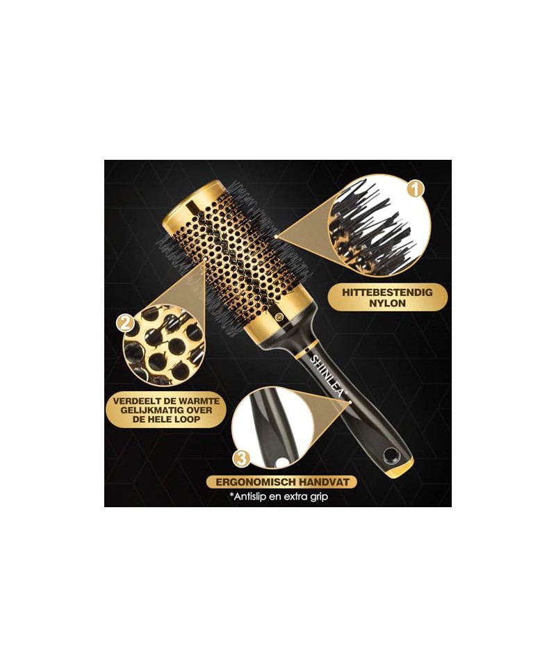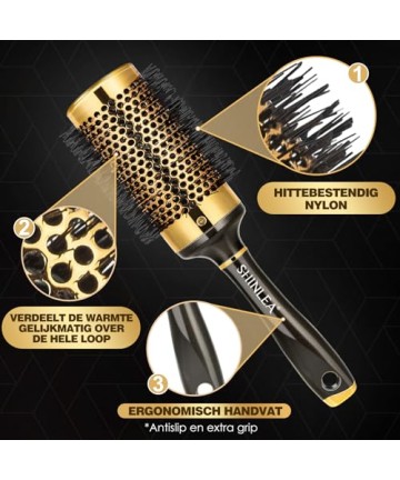 ONDULARE ȘI COAFARE EFICIENTĂ PENTRU VOLUM: Cilindrul din aluminiu extra-mare cu ventilație asigură o circulație a aerului care creează volum suplimentar și ridicare a rădăcinilor și buclelor. Cu peria rotundă SHINLEA, puteți crea ușor o coafură acasă, înainte de a ieși, în călătorie sau chiar singur