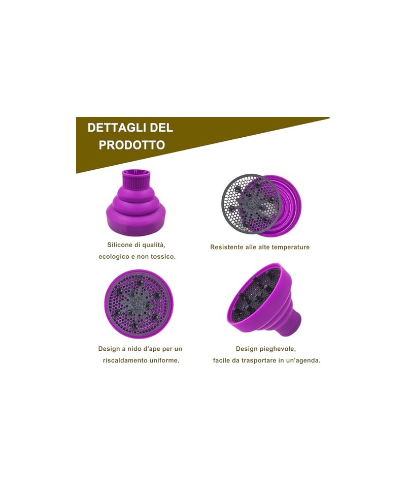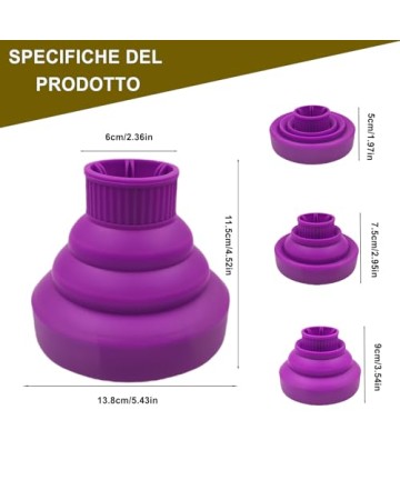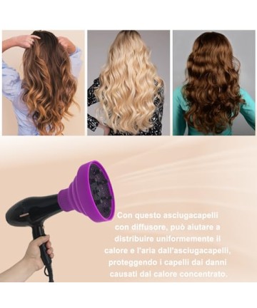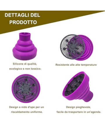 Difuzor pliabil din silicon pentru uscator de par, mov, JOIYHY