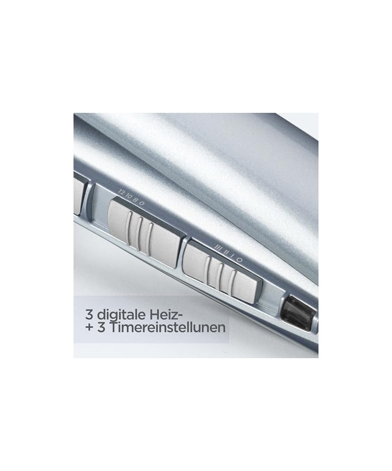 În plus, ondulatorul automat Curl Secret Hydro Fusion C1700E dispune de un modul de așteptare ce reduce în mod automat temperatura la 150°C după 20 de minute de inactivitate. Pentru a dezactiva modul de așteptare, apasă mânerele ondulatorului o dată și eliberează. Astfel, beauty gadgetul va reveni la temperatura selectată inițial.