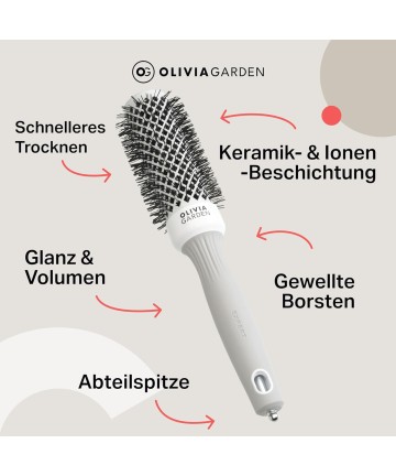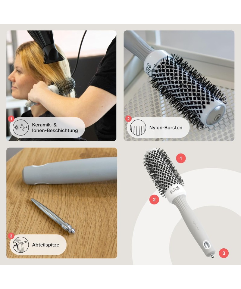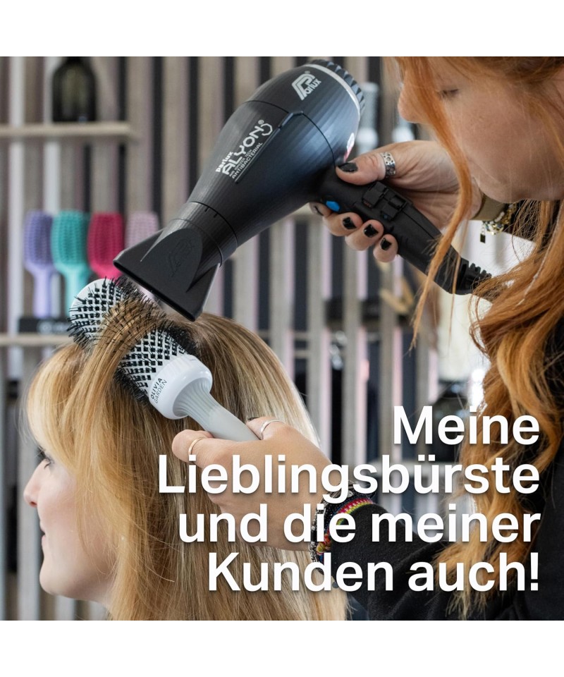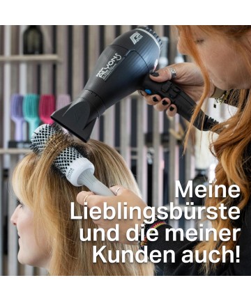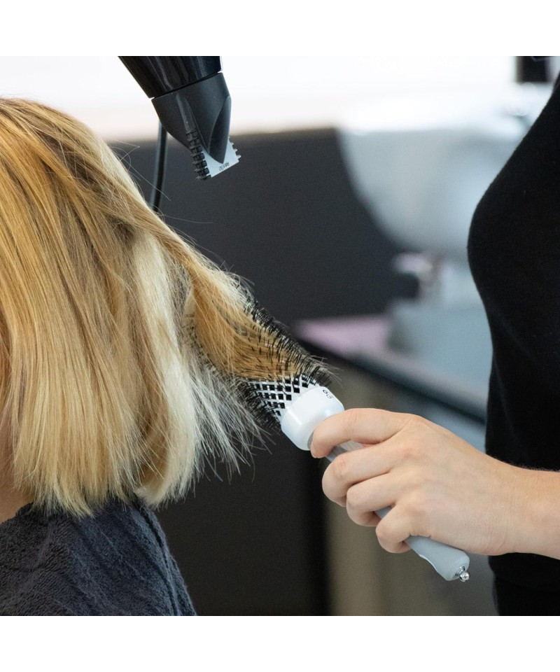 REZULTATE PROFESIONALE Perfectă pentru uscătoarele de păr voluminoase, această perie rotundă de 35 mm permite obținerea unor rezultate profesionale. Fie că este acasă sau la salon, ea creează volum și strălucire pe părul de lungime scurtă până la medie.