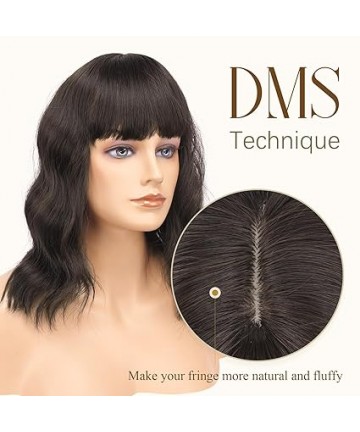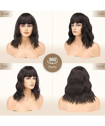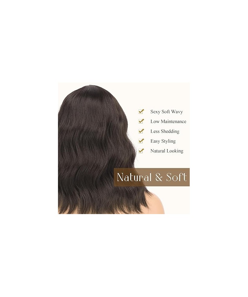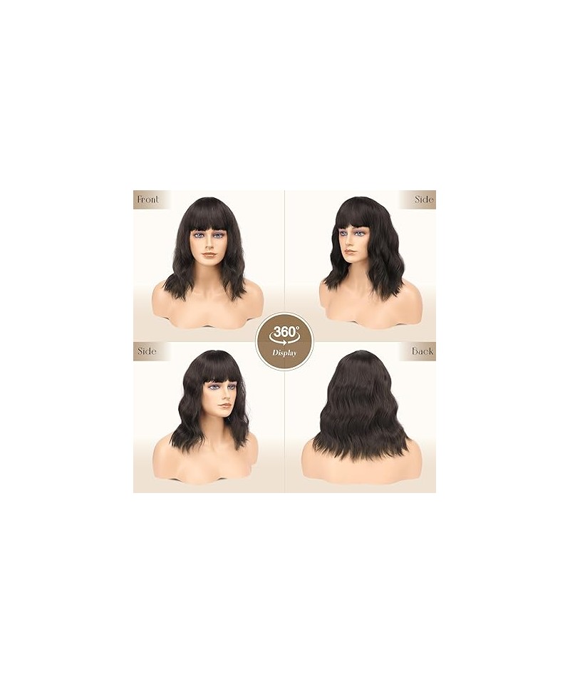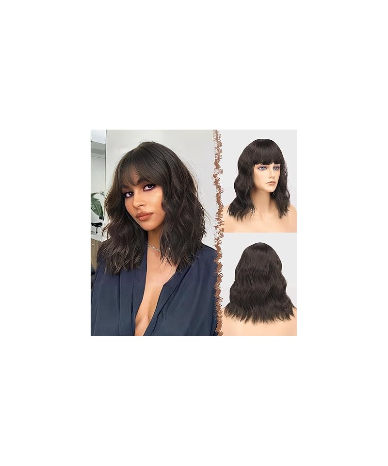 Peruca par sintetic ondulat, bob cu breton, FESHFEN , saten