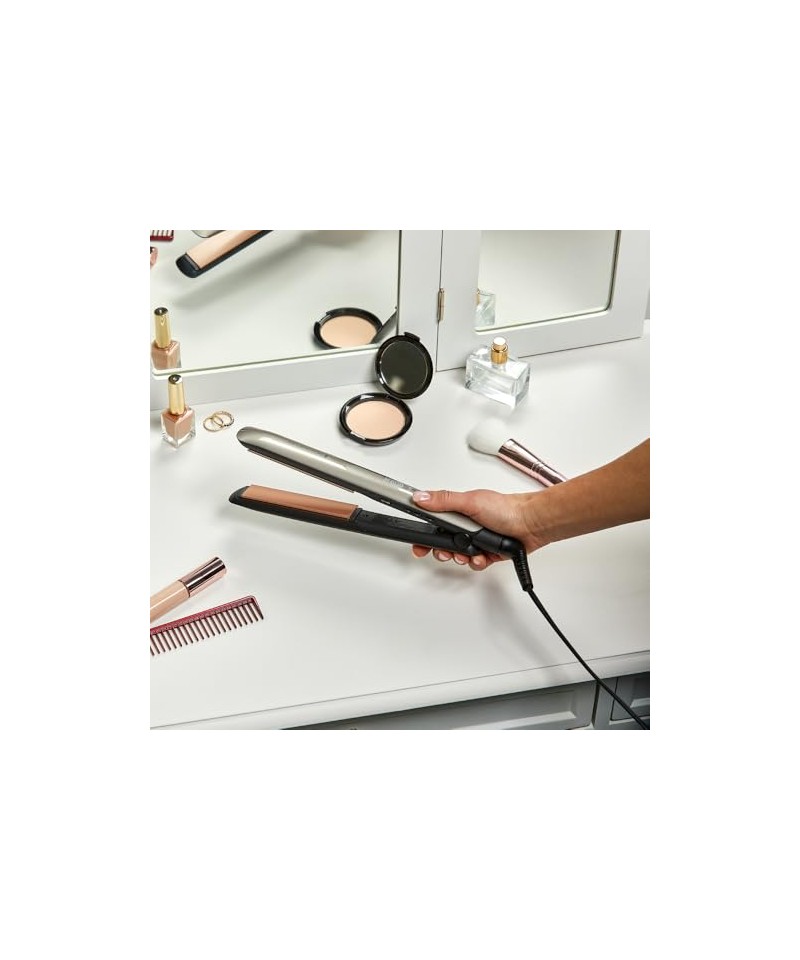 Placă de îndreptat părul cu tehnologie de protecție a keratinei: cu 57% mai multă protecție pentru păr datorită învelișului ceramic de keratină de înaltă calitate și senzorului de protecție termică
