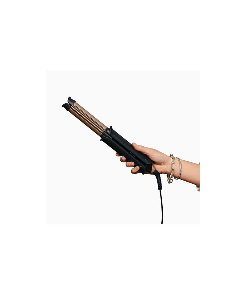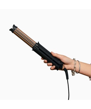 Aparatul de îndreptat și buclat părul produce rezultate fine, cu bucle și valuri moi.