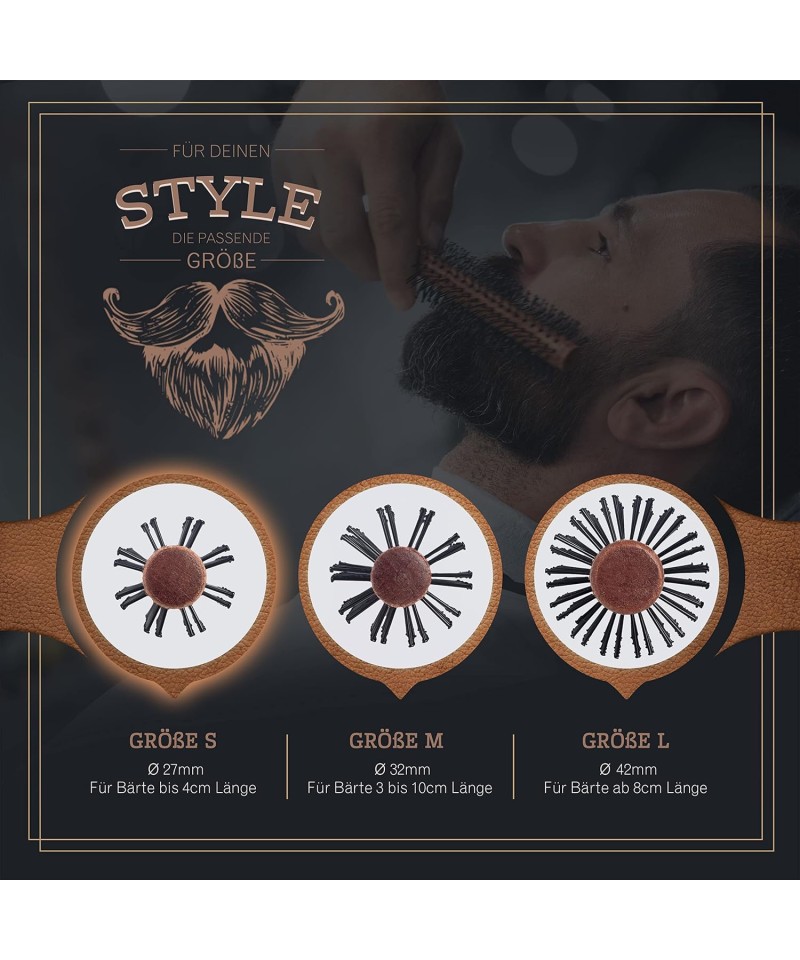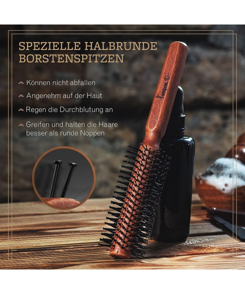 Îți dorești volum, strălucire fină și un efect de netezire? Atunci ia peria rotundă mică pentru bărbați puternici și profesionalizează-ți stilizarea bărbii: exact ca la frizer/coafor!