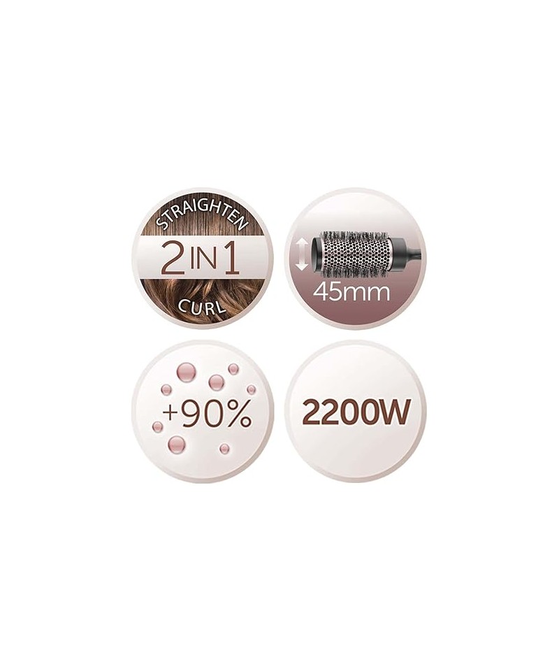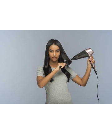 Uscătorul de păr D5707 oferă stiluri voluminoase de uscare cu suflare și un aspect elegant și plin de farmec cu duzele de coafare cu formă specială.