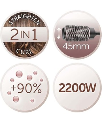 Functia turbo integrata permite uscarea foarte rapida, in timp ce nivelul de racire fixeaza coafarea parului drept, cret sau ondulat