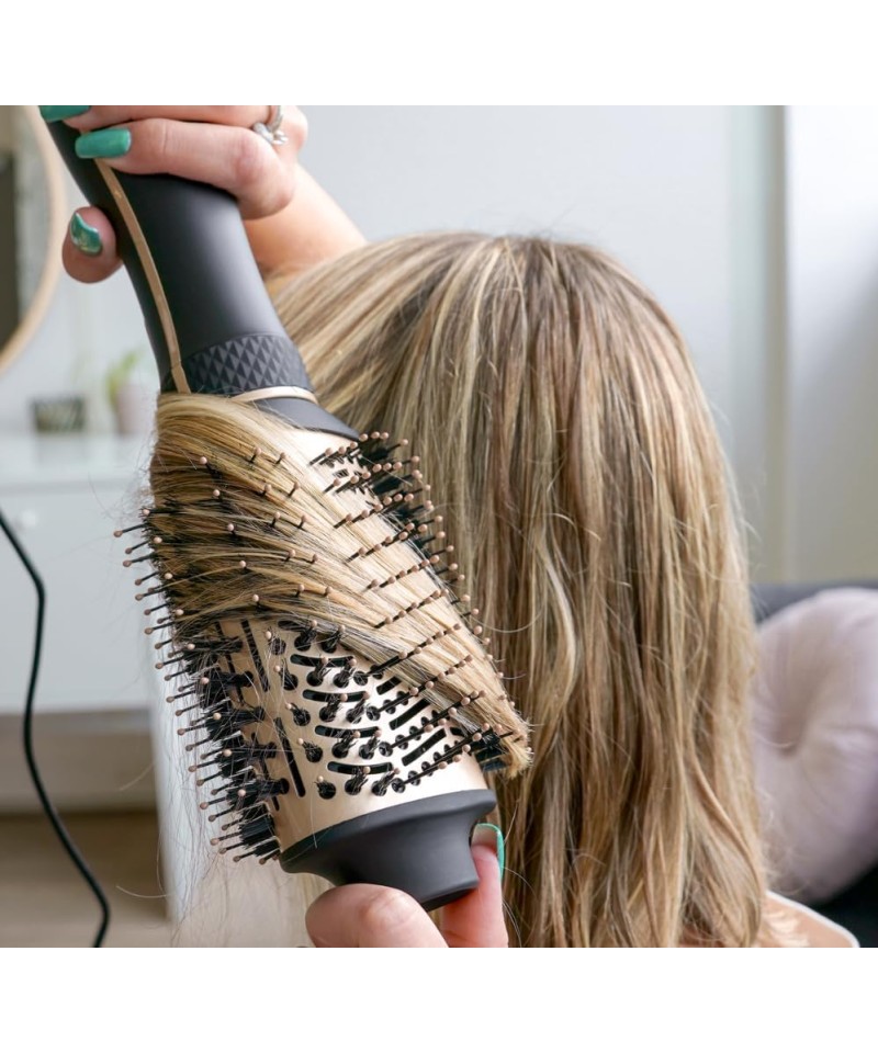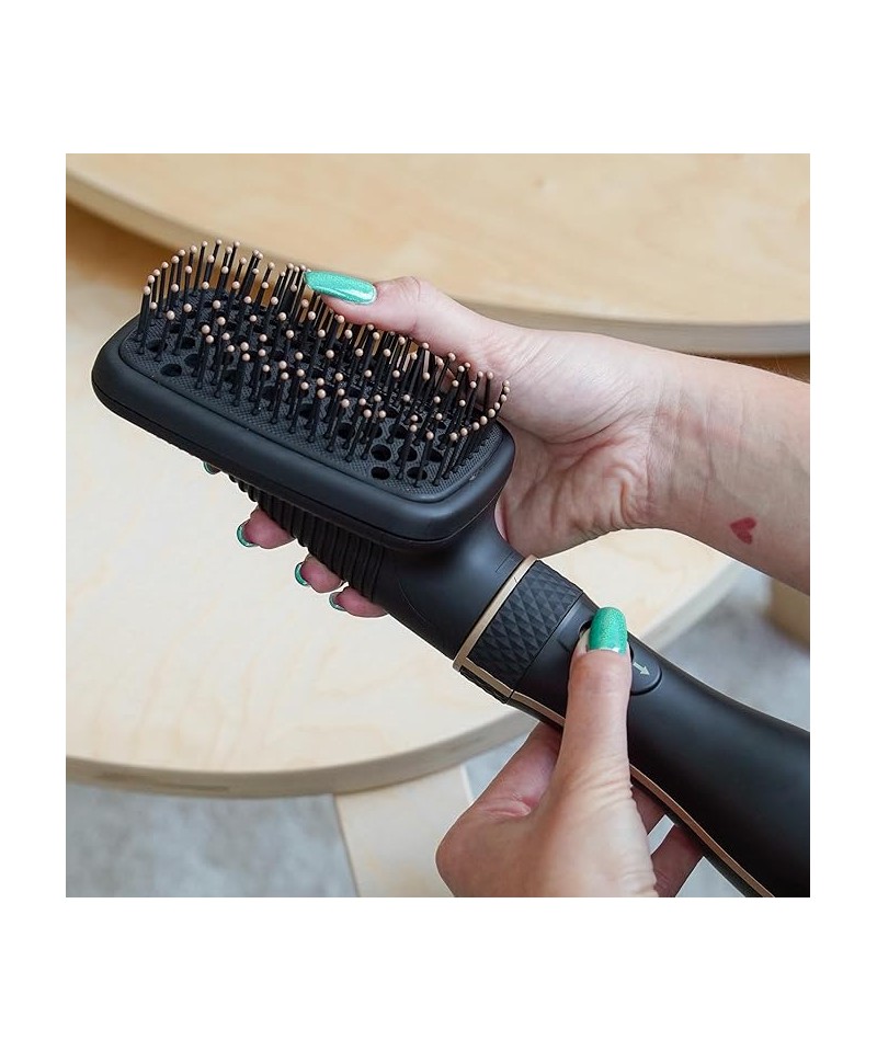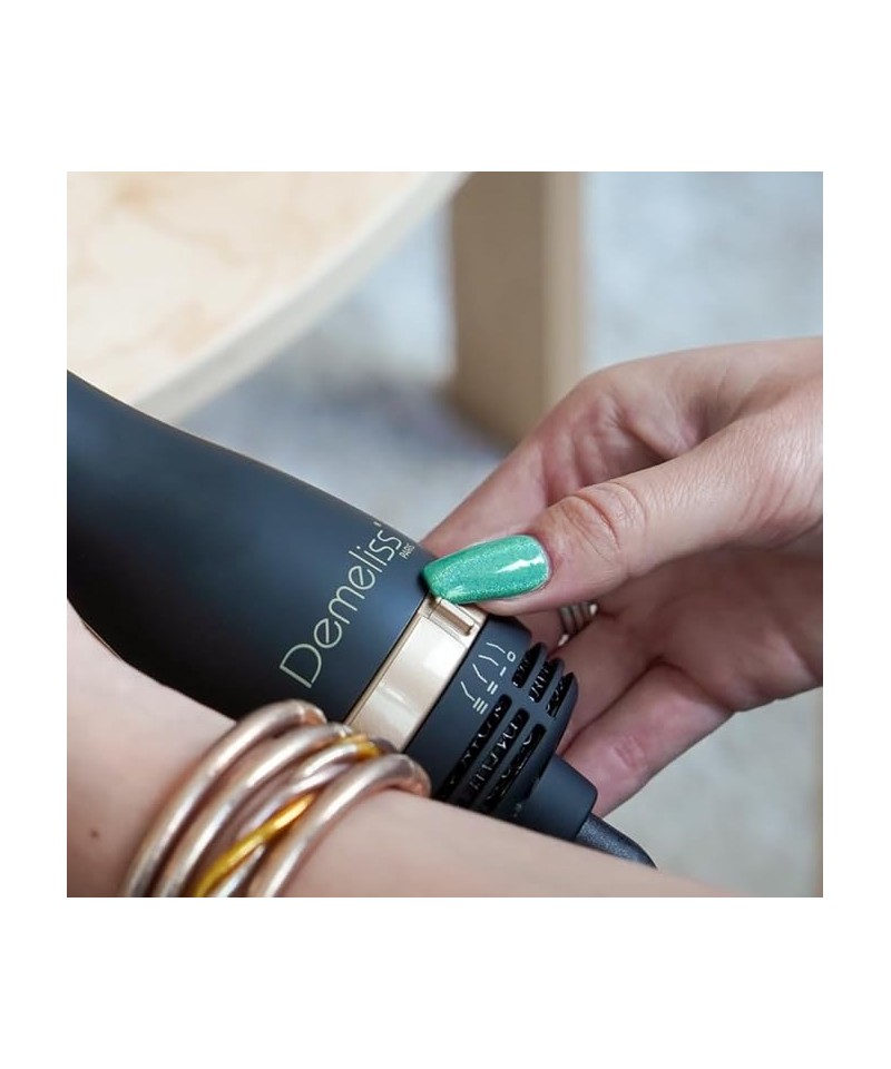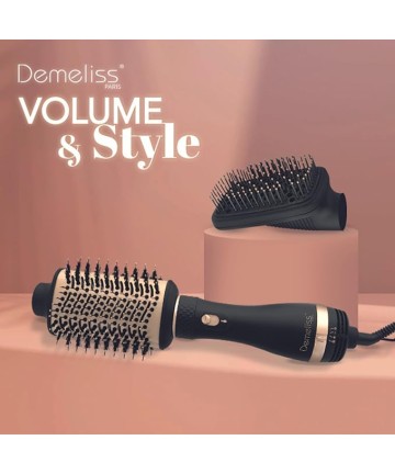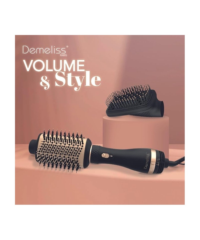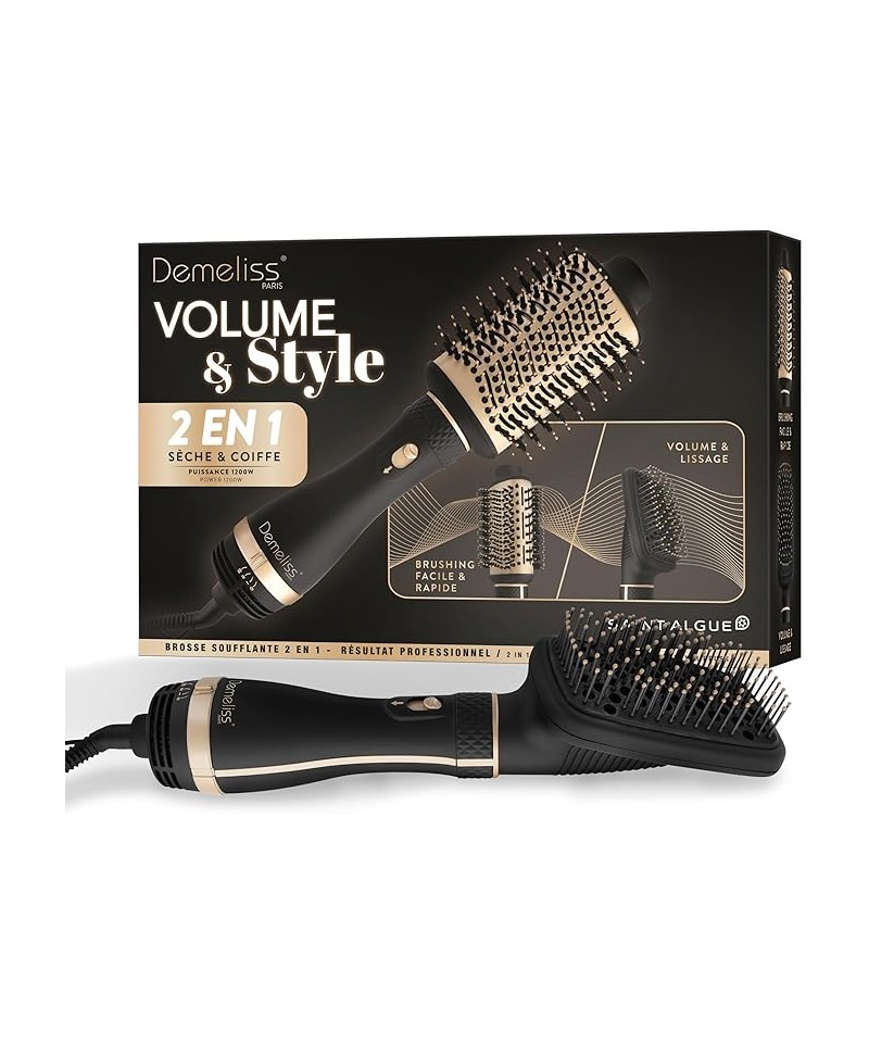 Perie de păr 2 în 1: Peria de păr Demelis VOLUME & STYLE de la Saint Algue permite un rezultat profesional, datorită celor 2 capete interschimbabile, învelișului ceramic și turmalină care protejează fibra capilară și permite un rezultat mătăsos, fără încrețire, și motorului său puternic și reglabil.