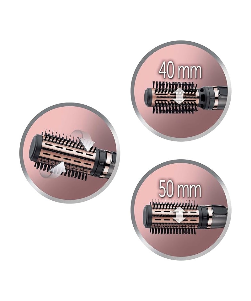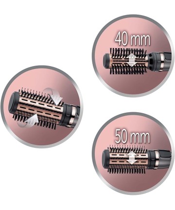 Peria rotativă Keratin Protect vine împreună cu o perie termală mixtă de 50 de mm și o perie termală delicată de 40 mm, așa că îți poți alege peria cu mărimea potrivită pentru tine, fie că vrei mai mult volum sau doar o elasticitate naturală.