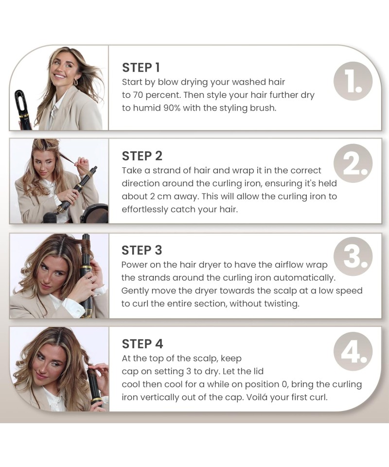 Aparatul multistyler conține 7 accesorii pentru tipuri miraculoase de coafuri.