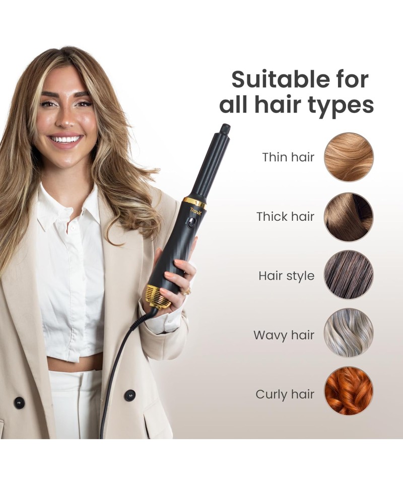 Într-o zi look de plajă, în cealaltă zi un look strălucitor sau o coafare grozavă. TravX Airstyler este cel mai nou și mai căutat produs de pe piață și permite utilizarea acestuia pentru orice tip și lungime de păr.
