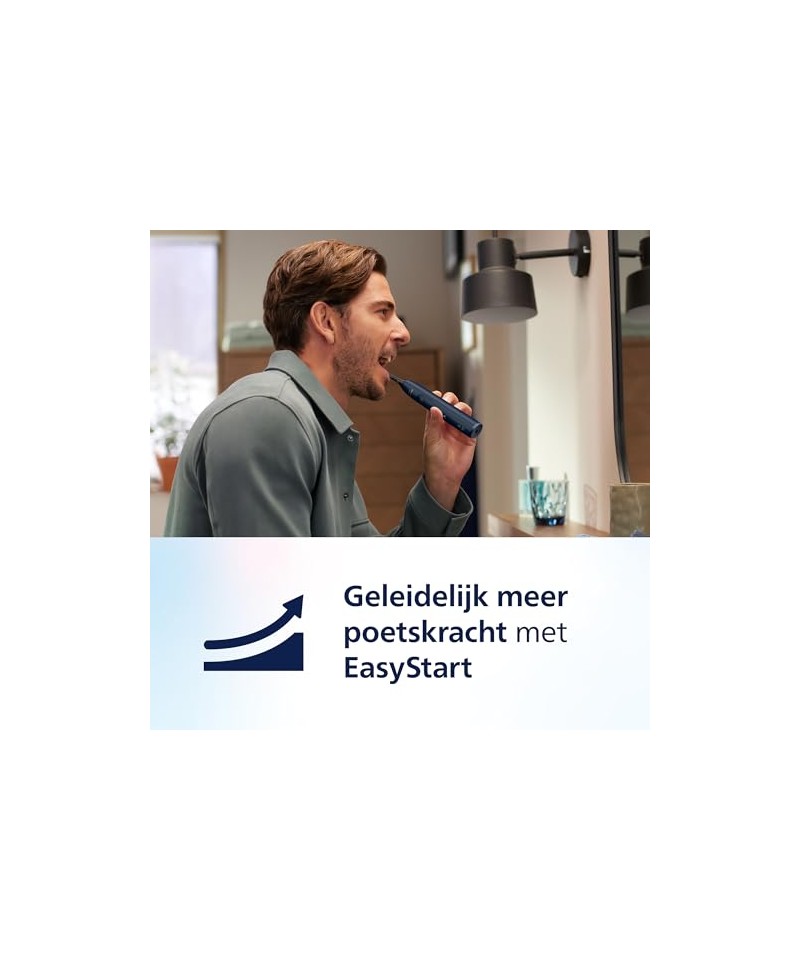 Dur cu placa bacteriană, delicat cu gingiile: protejați-vă gingiile cu alerta inteligentă de presiune, care pulsează ușor, reducând în același timp vibrațiile atunci când periați prea tare Începeți periajul ușor: funcția EasyStart crește ușor puterea de periaj în primele 14 sesiuni de periaj pentru a vă ajuta să vă obișnuiți cu periuța de dinți Philips Sonicare