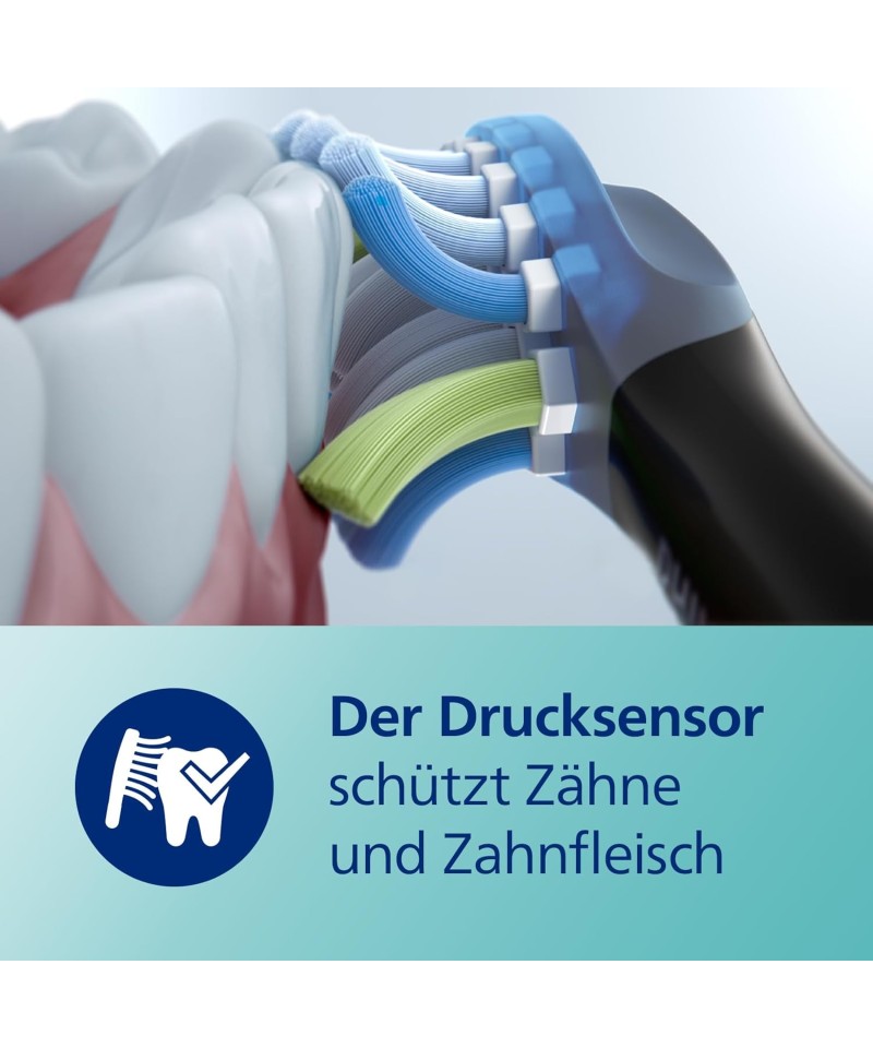 Sunt disponibile 3 niveluri de intensitate. Senzorul de presiune integrat Philips Sonicare vă informează când apăsați prea tare - piesa de mână pulsează ușor și vă reamintește să vă periați ușor.