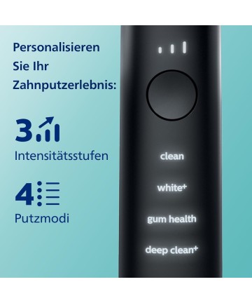 Există 4 moduri de curățare: modul Clean pentru curățarea zilnică, modul White+ pentru îndepărtarea decolorării, modul Gum Health pentru curățarea delicată, dar eficientă a gingiilor și modul Deep Clean+ pentru o curățare revigorantă și temeinică.