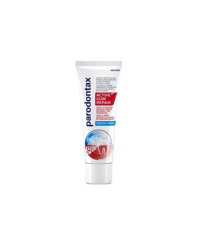 Cum vă protejează Parodontax: Pasta de dinți Parodontax Active Gum Repair pentru gingii sănătoase și dinți puternici întărește smaltul și elimină decolorările. Acesta conține fluor pentru a întări dinții și a preveni caria.