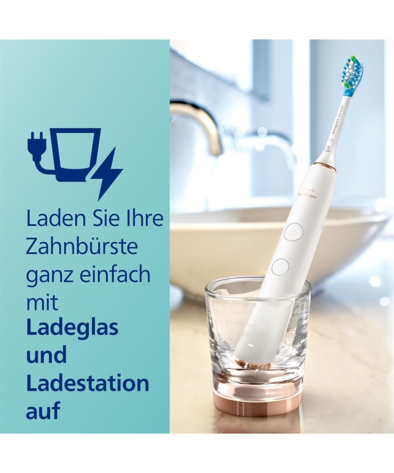 Periuța de dinți electrică Philips Sonicare DiamondClean 9000 oferă dinți mai albi în doar 1 zi* și, cu raportul de progres, puteți urmări periajul utilizând aplicația Sonicare