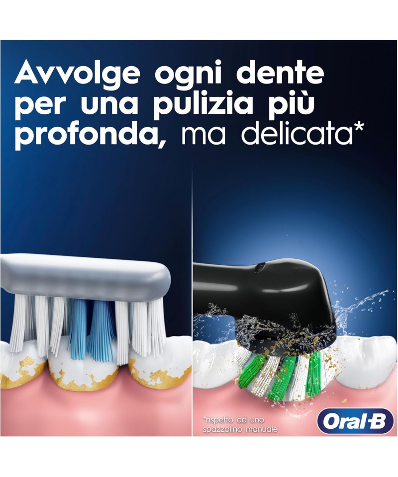 Periuța de dinți electrică reîncărcabilă Oral-B Vitality Pro oferă o curățare superioară dovedită clinic în comparație cu o periuță de dinți manuală obișnuită.