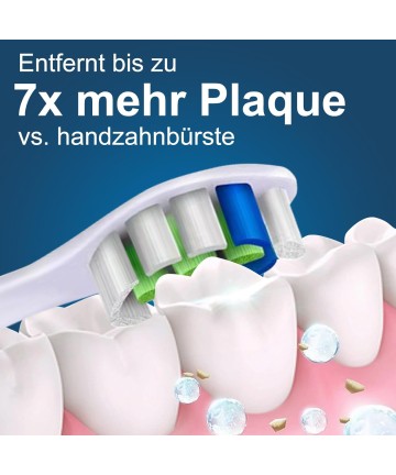 Curățare excelentă: perii denși, în combinație cu tehnologia puternică de conducere a sunetului, pot îndepărta de până la 7 ori mai multă placă bacteriană decât o periuță de dinți manuală.