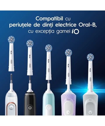 Capetele de periaj Oral-B Sensitive Clean sunt compatibile cu toate periutele de dinti reincarcabile Oral B, cu exceptia gamei iO.