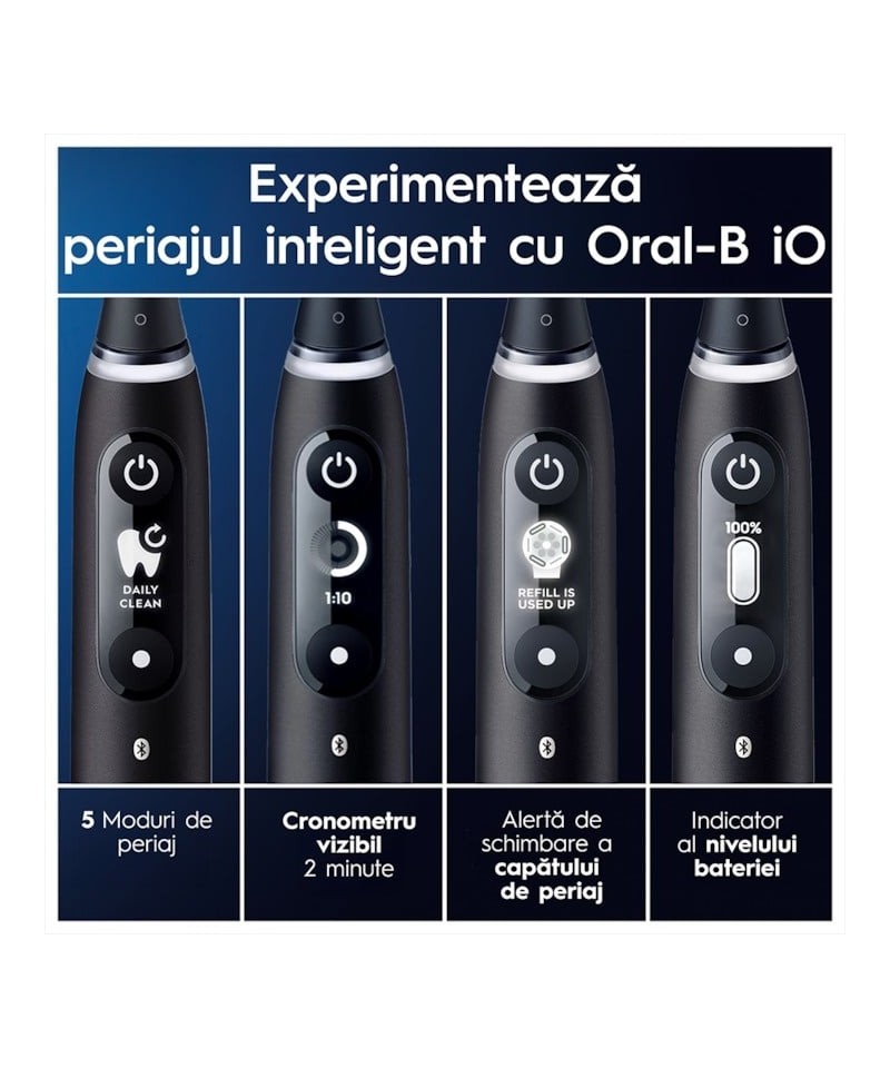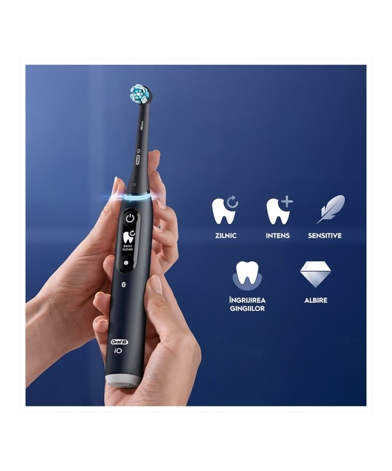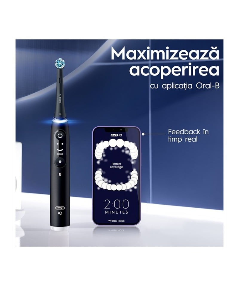 TEHNOLOGIE MAGNETICĂ iO REVOLUȚIONARĂ pentru cea mai bună curățare Oral-B de până acum, pentru o senzație de curățare de calitate profesională și o experiență de periaj incredibil de delicată.