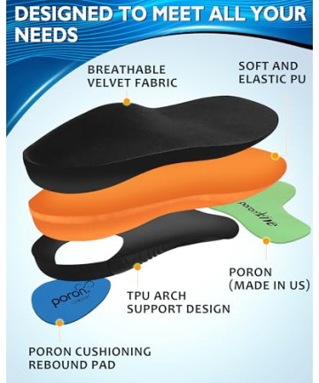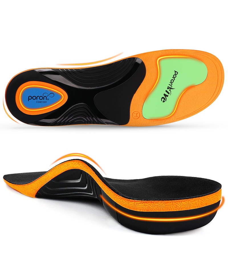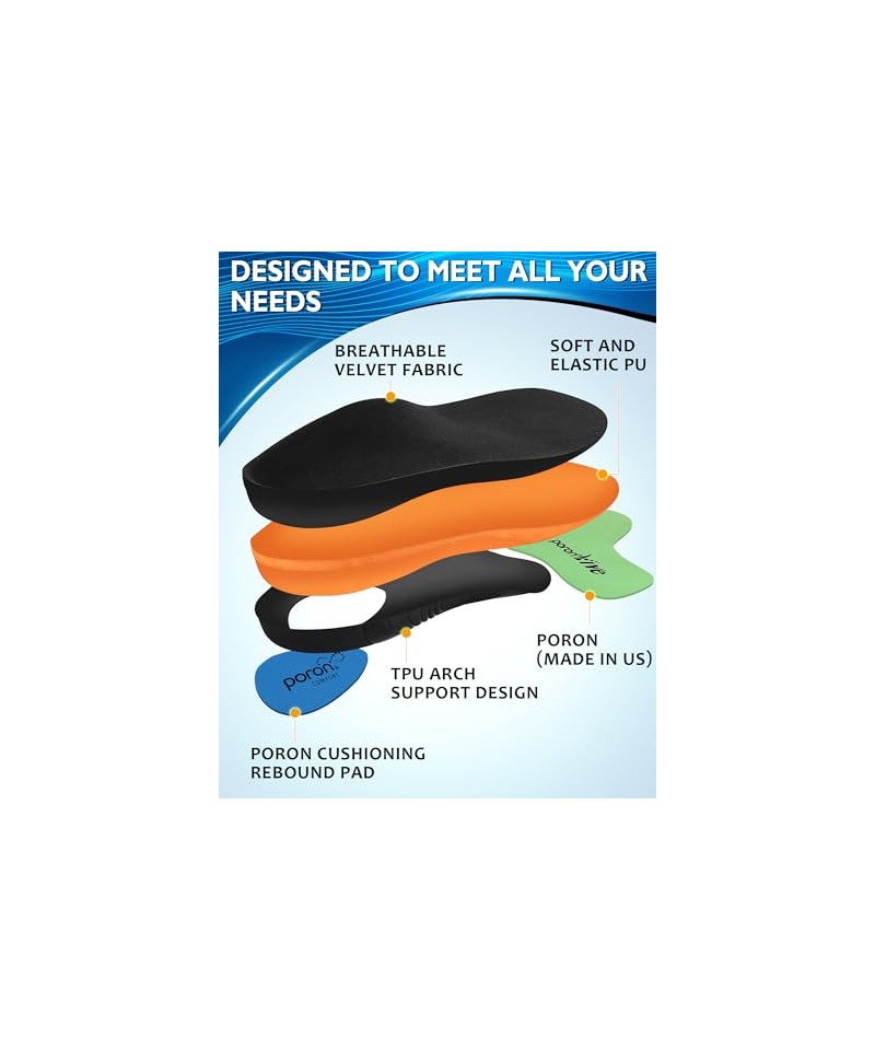 Suport pentru ameliorarea durerii: în sfârșit, fără durere pe tot parcursul zilei! Suportul înalt de 3,5 cm pentru arc cu căptușeală U la călcâi face ca branțurile noastre pentru încălțăminte pentru bărbați și femei să fie însoțitorul ideal, fie că urcați scările la birou, faceți drumeții în Alpi sau plimbați câinele seara.