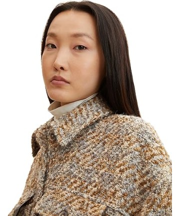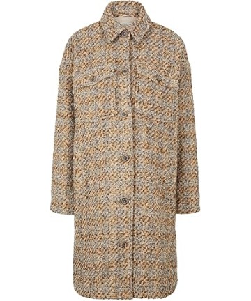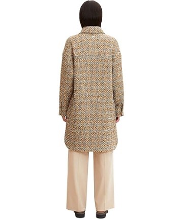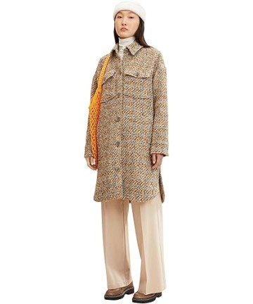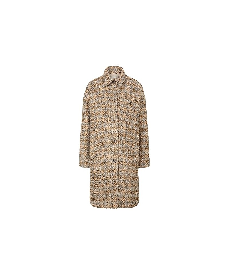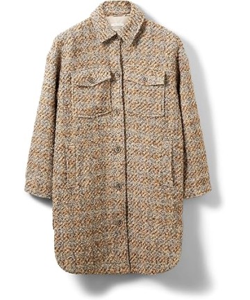 Cămașă lungă din material boucle cu buzunare pentru mâini, buzunare aplicate la piept și fante laterale la tivul rotunjit