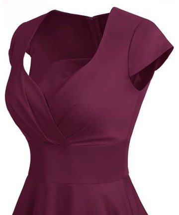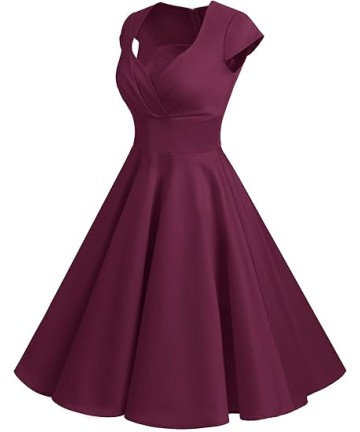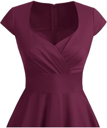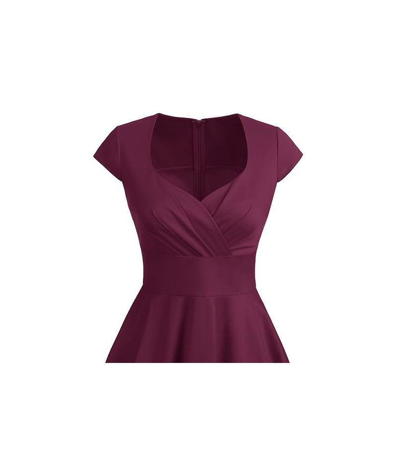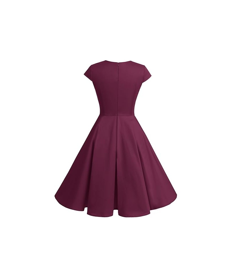Rochie vintage anii 1950 pentru femei - Această rochie vintage de cocktail are mâneci scurte, decolteu în formă de inimă, fermoar central la spate, talie empire, lungime la genunchi.