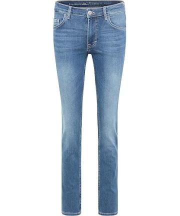 Spălarea subtilă a blugilor elastici cu design clasic cu 5 buzunare asigură un aspect autentic uzat.