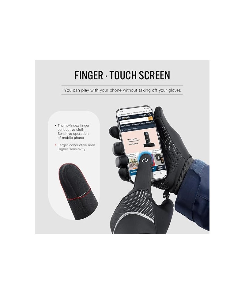 Degetul mare și degetul arătător sunt echipate cu microfibră conductivă, astfel încât să puteți folosi dispozitivele cu ecran tactil fără a fi nevoie să scoateți mănușile.