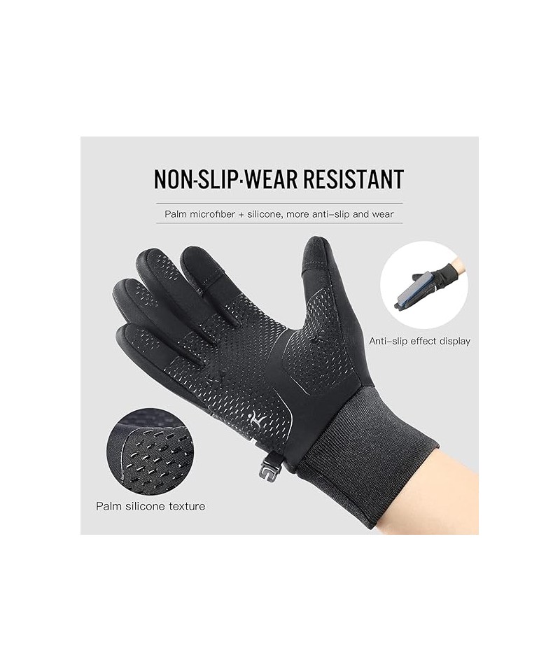 Mănușile sunt proiectate cu puncte de silicon anti-alunecare pe palmă și degete, care asigură o prindere sigură pe telefon sau ceașcă.