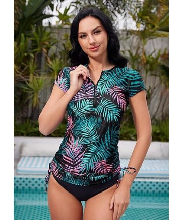 Design versatil cu volane laterale și fermoar față 1/4 - Topul de baie se potrivește stilului cu funcționalitatea, având volană laterală reglabilă și fermoar frontal 1/4 convenabil.