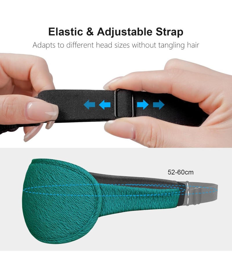 【Bandă elastică ajustabilă】Pentru a vă oferi o calitate mai bună a somnului, am proiectat curele ajustabile în formă de material textil și bandă elastică. Cureaua moale și reglabilă nu va încâlci părul, este flexibilă și durabilă și se potrivește celei mai mari părți a circumferințelor capului.