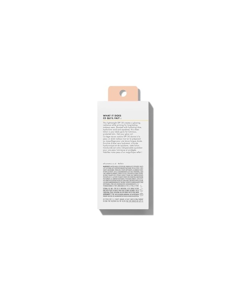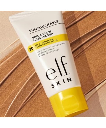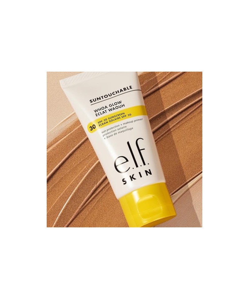 Asigură un ten radiant: e.l.f. Suntouchable Whoa Glow SPF 30 oferă un finisaj măgulitor cu o notă de strălucire piersică pentru o strălucire naturală și radiantă, în timp ce SPF 30 chimic protejează pielea de razele UVA și UVB.