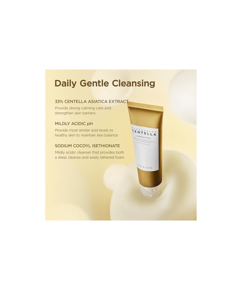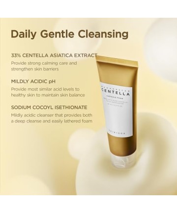 Spuma Madagascar Centella curăță pielea sensibilă și cu probleme fără a o irita.