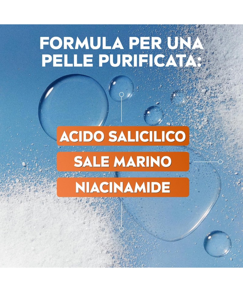 Spune adio petelor - îmbogățit cu acid salicilic, sare de mare și niacinamidă, reduce și previne eficient reapariția petelor după 7 zile