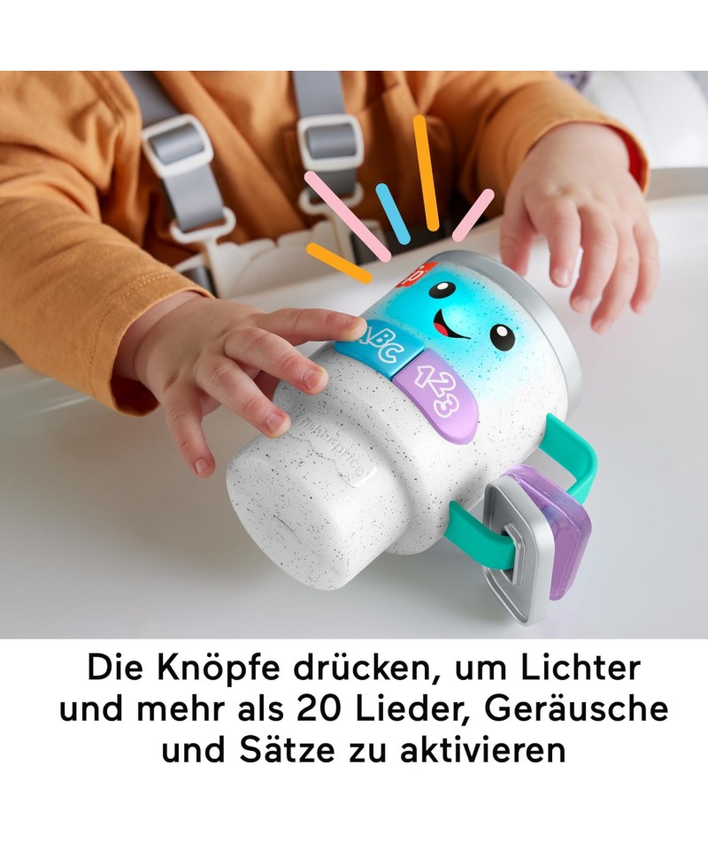 Jucărie interactivă pentru bebeluși în formă de cană la pachet, cu lumini grozave, muzică și distracție distractivă pentru micii cunoscători de cafea de mâine.