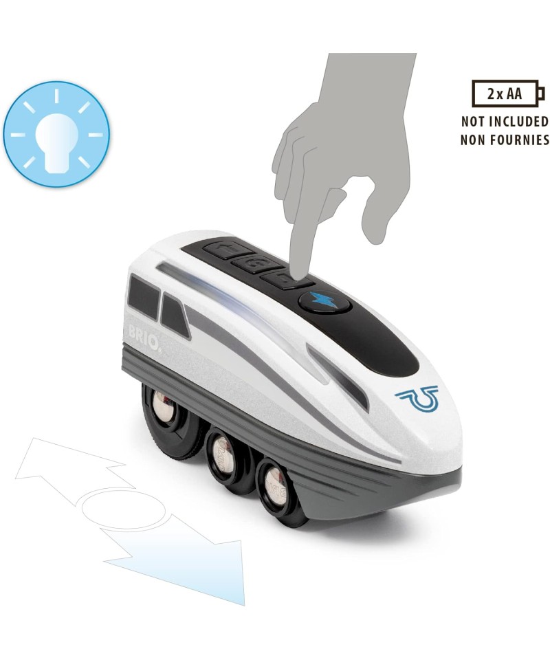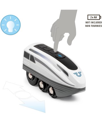 Boost turbo: Dacă apăsați butonul mare turbo, această locomotivă de jucărie alimentată cu baterii își dublează viteza timp de 5 secunde - luminile albe de pe lateralul locomotivei se schimbă într-un albastru rece atunci când efectul turbo este activat