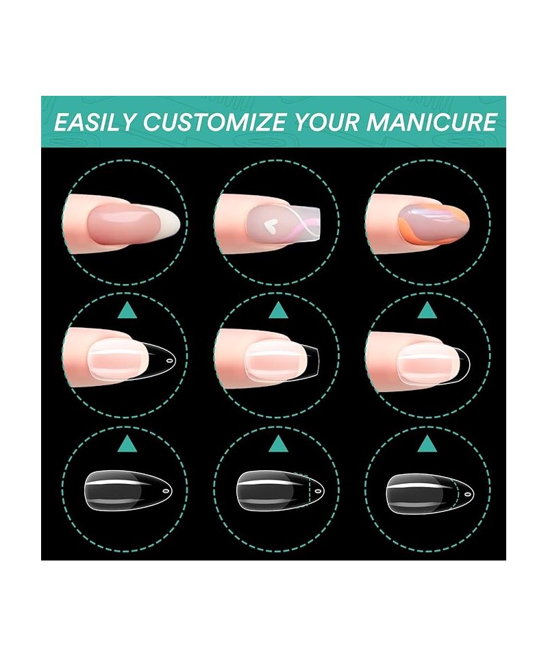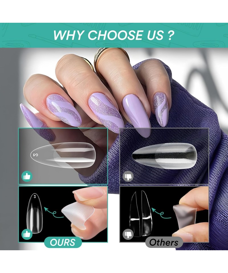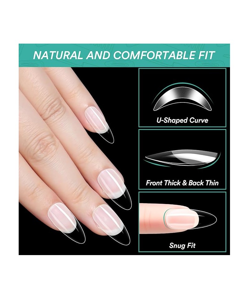 Potrivire naturală: Designul unic, cu o față mai groasă și o spate mai subțire, se potrivește perfect unghiilor dvs., prezentând un efect natural și autentic. Suprafața unghiilor false este netedă și ușor de colorat, dar rezistentă la decolorare, perfect compatibilă cu diverse oje, geluri colorate și pudre de dip.