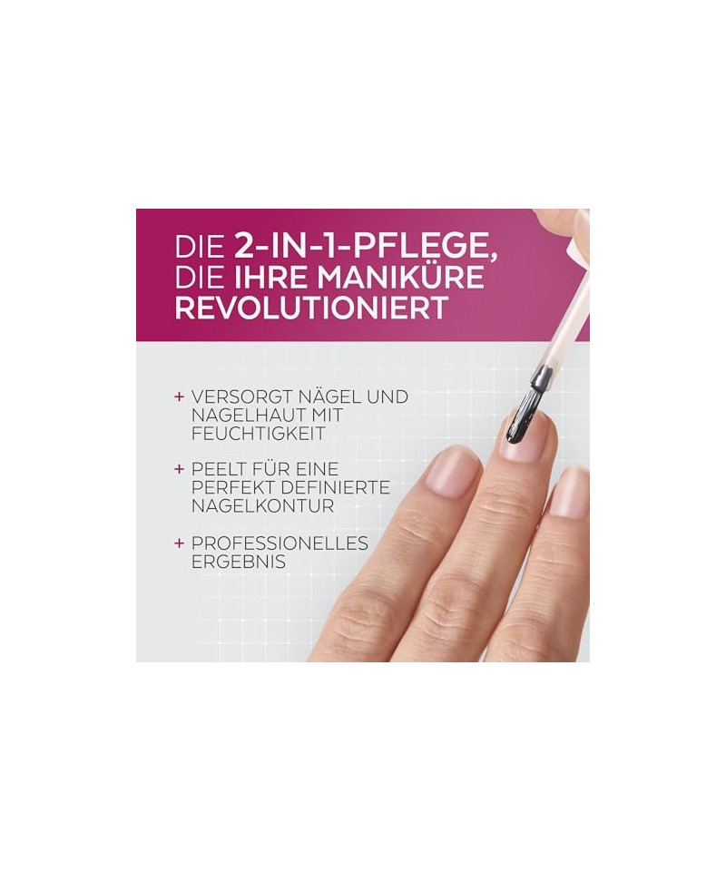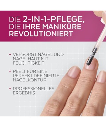 Îngrijire a cuticulei în 2 în 1 care exfoliază intens și hidratează, facilitează îndepărtarea cuticulelor uscate și pregătește unghia pentru manichiură