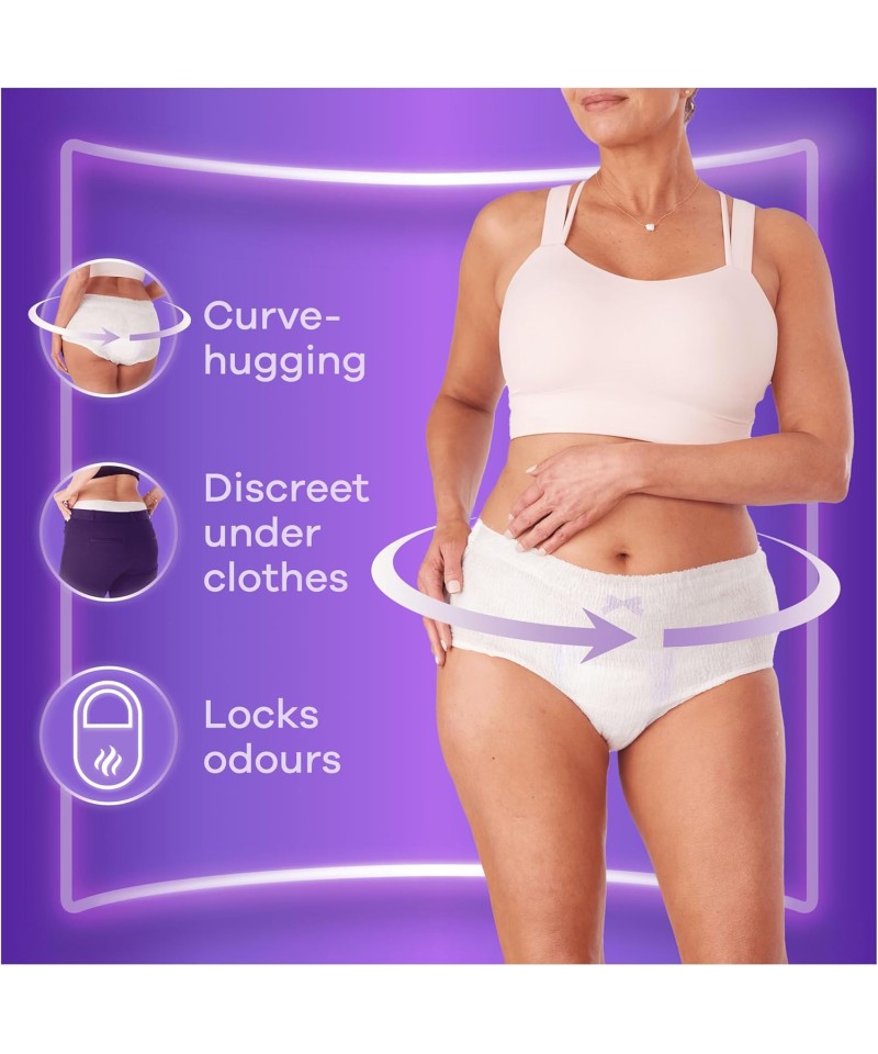 Chiloții ultra-absorbanți dispun de tehnologia RapidDry, care ajută la absorbția scurgerilor și a mirosurilor în câteva secunde, în timp ce barierele lor duble anti-scurgeri îți oferă o protecție excelentă.