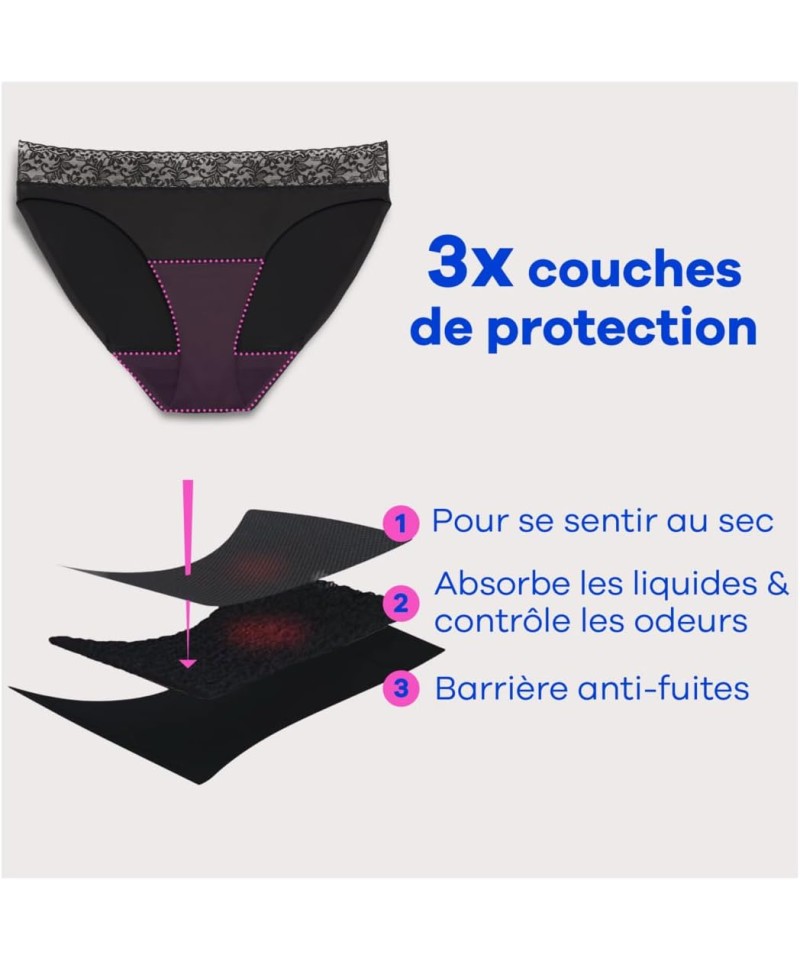 3 STRATURI DE PROTECTIE: primul strat este conceput pentru a vă menține uscată, al doilea strat absoarbe lichidele și controlează mirosurile, iar al treilea strat este o barieră împotriva scurgerilor.